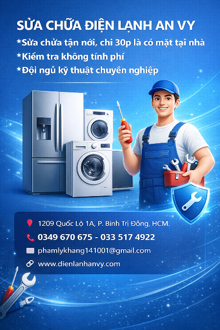 👉 Điện Lạnh An Vy nhận sửa chữa nhanh chóng – đúng bệnh – giá hợp lý.